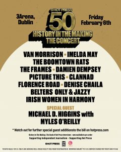 It will take place next month, 6 February 2026, in Dublin at 3Arena as part of the 50th anniversary celebrations of Hot Press magazine and including the launch of a special limited edition book “History In the Making: The Book of Hot Press Interviews”