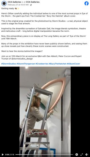 The giant eye from The Cranberries (famous/infamous) album cover is on display. CCA Galleries posted a short video on their socials (Facebook for instance) about it.