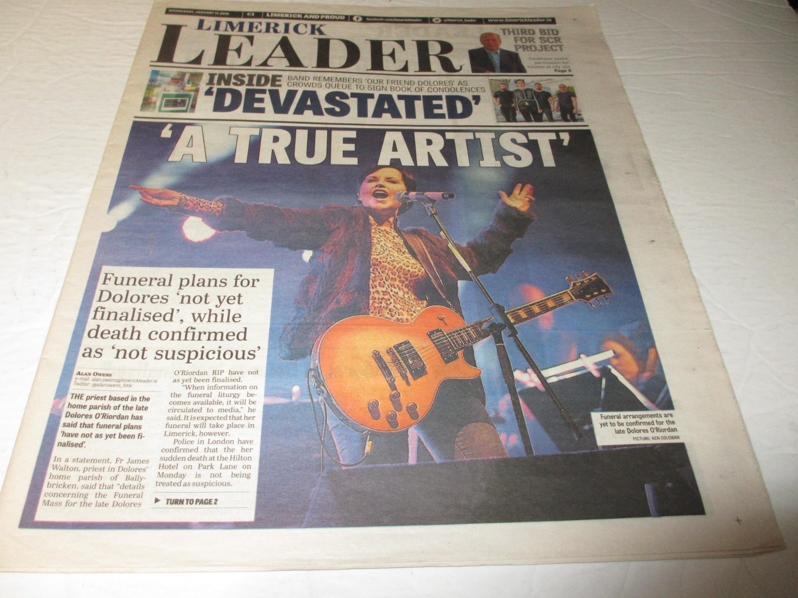 | English | Ireland | 2019.02.20 | The Leader | Front page +Quarter page article (“Dolores is the All Time Great”) |