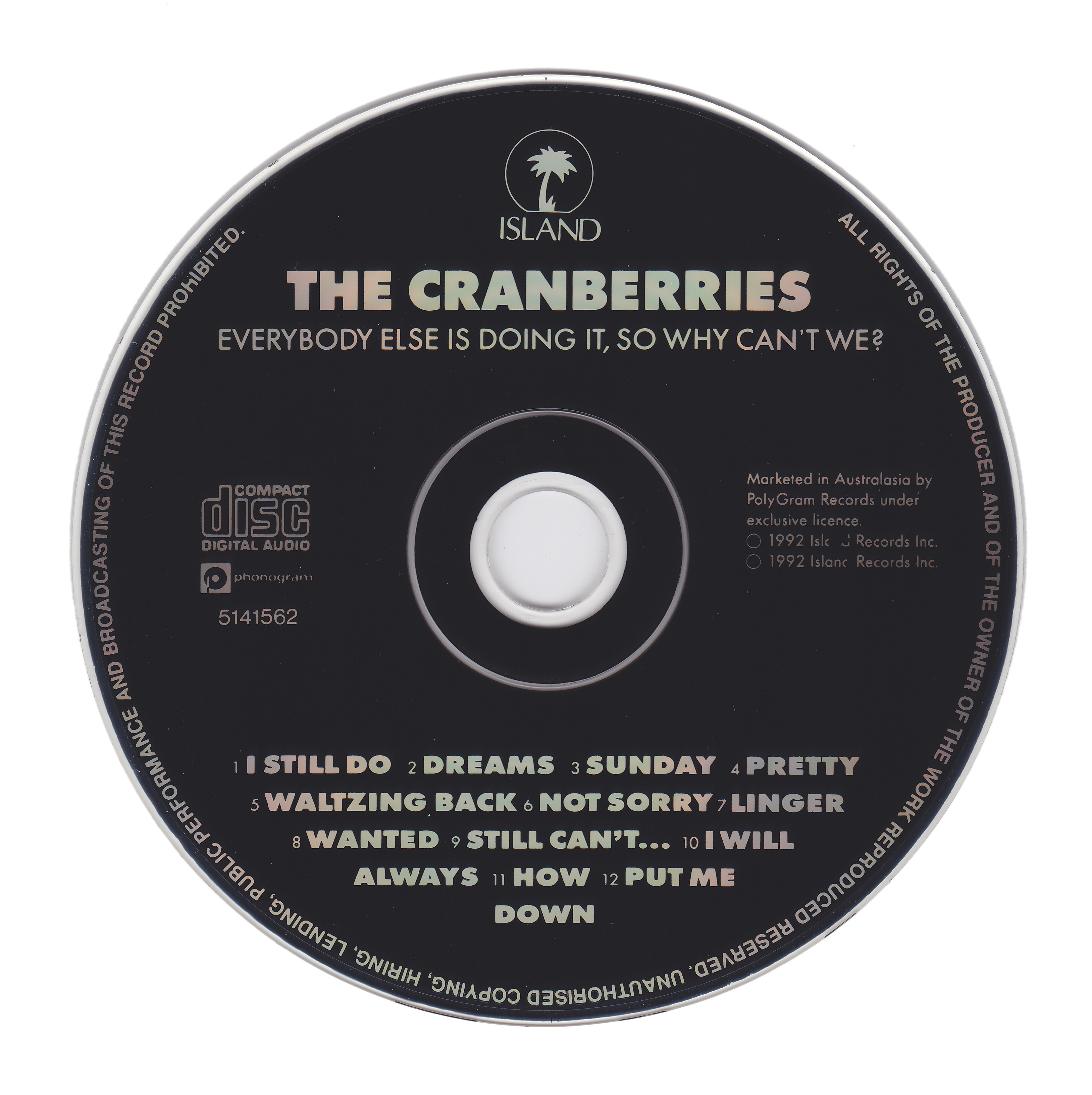 The disc features a Phonogram logo that was not present on v1 and on the outer edge “All Rights Reserved…” is written in uppercase.