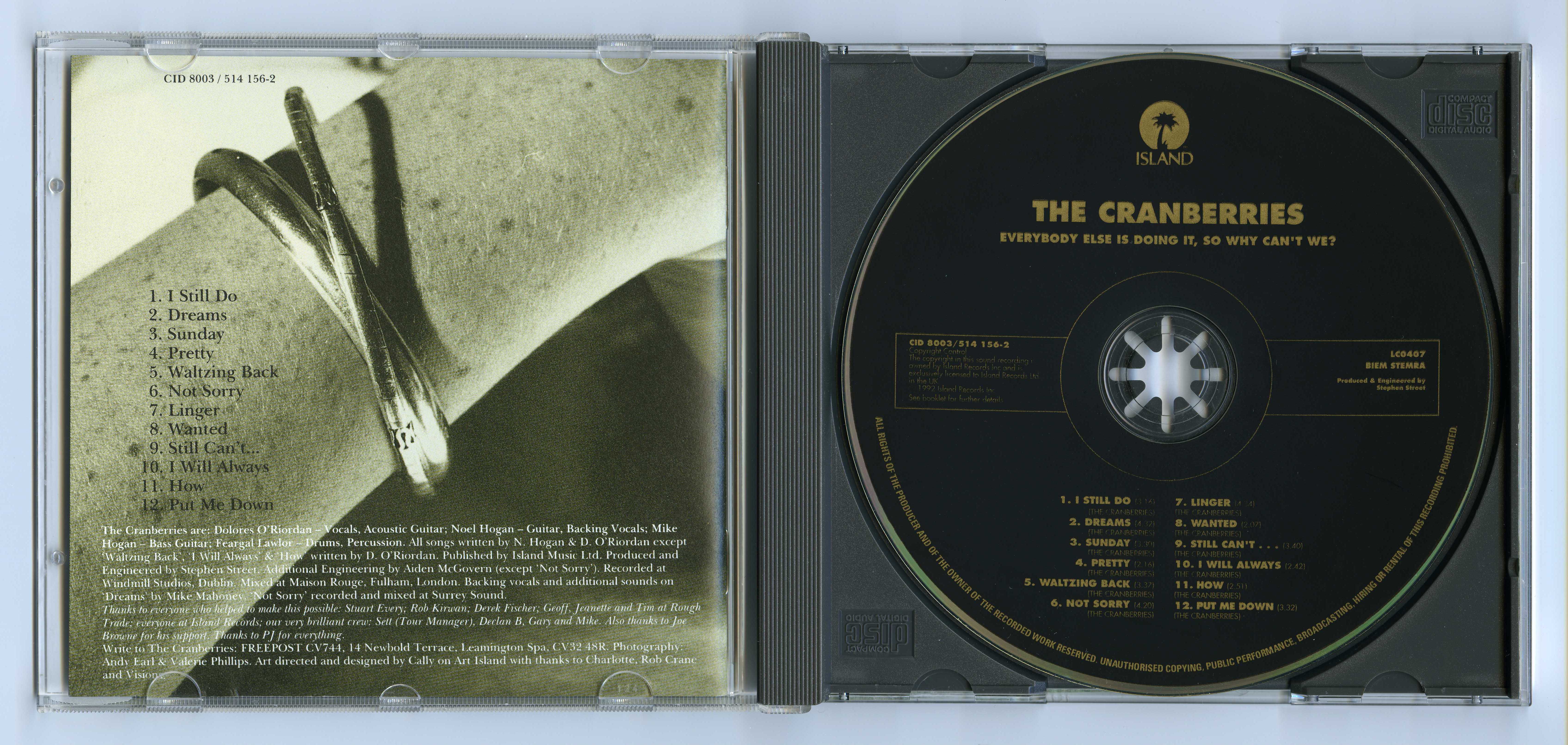 • Disc has fewer BIEM STEMRA credits, with “THE CRANBERRIES” in parentheses under every track.