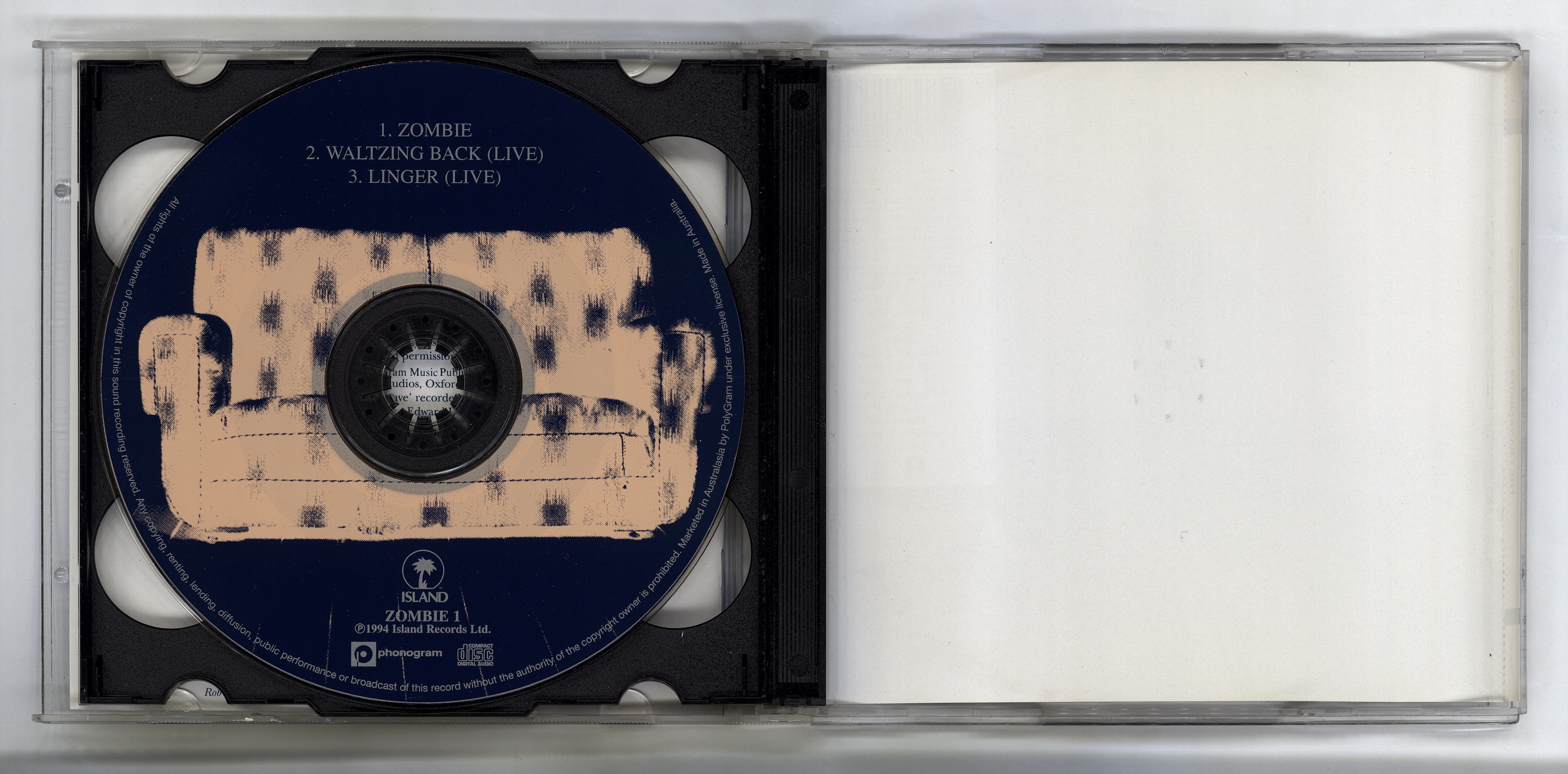 Bonus CD includes “Zombie” (original version) plus 2 live tracks; catalog number is ZOMBIE 1.